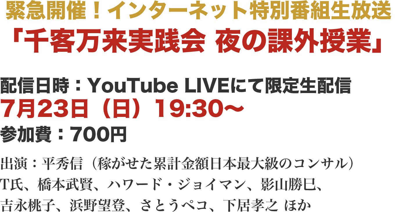 もしあなたが、「なんだかうまくいかないな…」「どうして稼げないんだろう…」と悩んでいるとしたら、この番組を見れば100%解決することでしょう。ほとんどの起業家、サラリーマンがうまくいかない理由を体験談をもとに詳細に解説!